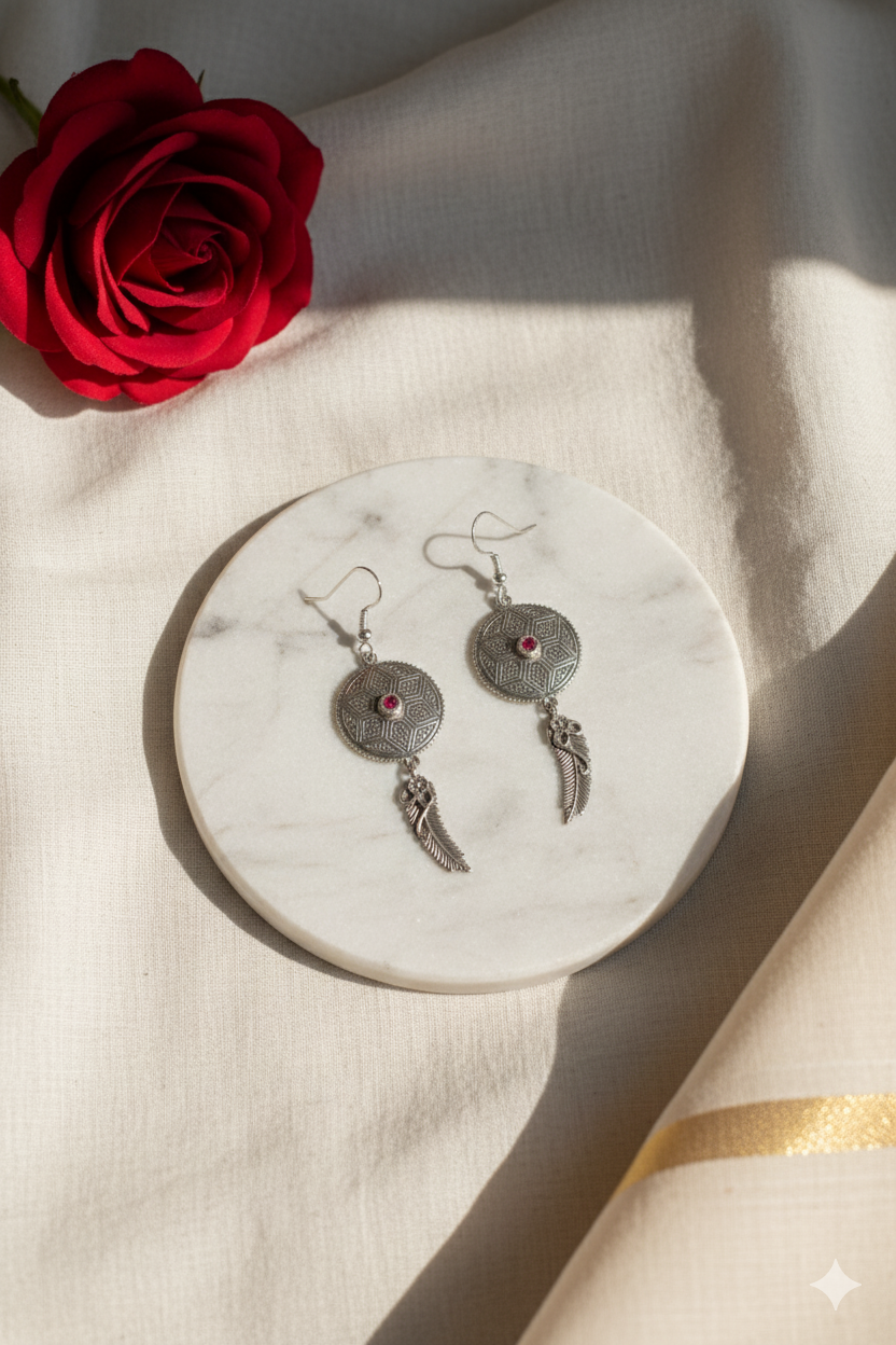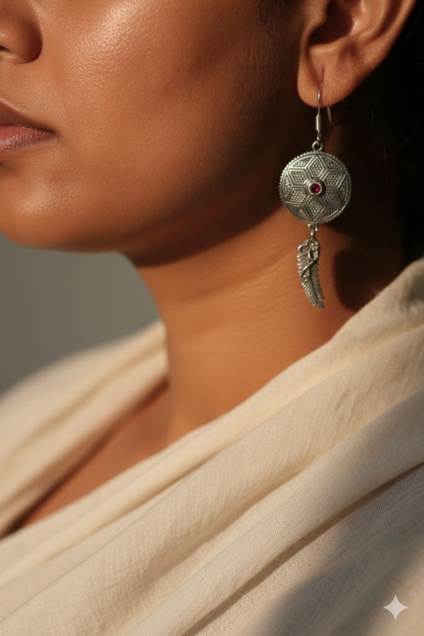 Expertly handcrafted from premium 925 sterling silver featuring genuine garnet gemstones prized for their deep crimson hue and natural brilliance. Master Indian artisans employ traditional techniques to create the intricate mandala-inspired filigree work, with each concentric circle and geometric pattern meticulously hand-carved. The teardrop garnet stones are carefully selected and precisely set to showcase their rich, wine-red color and natural fire. Each earring undergoes detailed finishing with secure French hook ear wires for comfortable, reliable wear.