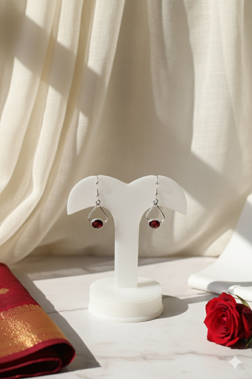 Expertly handcrafted from premium 925 sterling silver featuring genuine garnet gemstones prized for their deep red color and natural brilliance. Master Indian artisans employ traditional techniques to create the sleek teardrop framework, with each curve precisely formed for optimal stone display. The oval garnet stones are carefully selected for their rich crimson beauty and clarity. Each earring undergoes detailed finishing with secure French hook ear wires for comfortable, reliable wear.